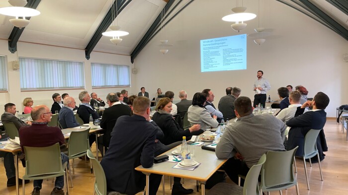 Im Rahmen der anschließenden Vorträge stellte Dr. Benjamin Geßlein (ÜZ Mainfranken) die neusten gesetzlichen Rahmenbedingungen vor, durch die inbesondere im kommunalen Umfeld Herausforderungen entstehen.
