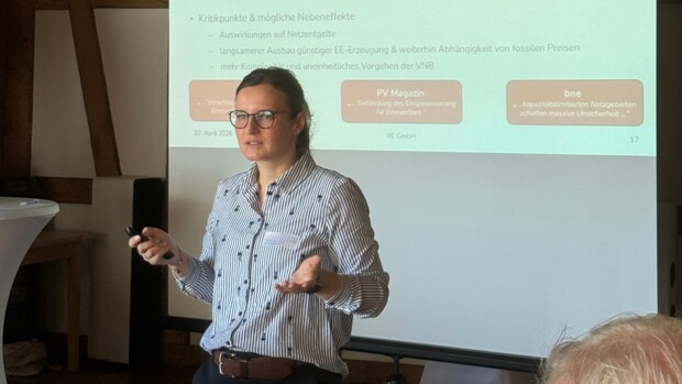 Im weiteren Verlauf stellte Pia Meiller vom Institut für Energietechnik aktuelle Entwicklungen in der Energiewirtschaft vor und ordnete zentrale politische Rahmenbedingungen ein. Dabei ging es unter anderem um aktuelle Gesetzesvorhaben sowie die Weiterentwicklung von Fördermechanismen. Ein wichtiger Aspekt: Künftig könnten Projekte stärker nach ihrem Reifegrad bewertet werden, um gezielt solche Vorhaben zu unterstützen, die einen besonderen Beitrag zum Energiesystem leisten – anstelle des bisherigen „Windhundprinzips“ ("Wer zuerst kommt...").