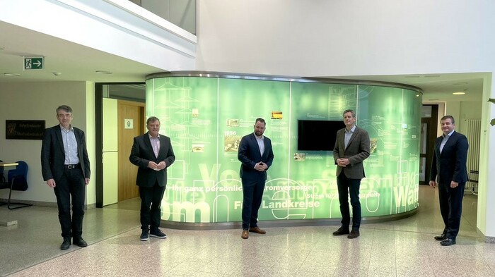 Der SPD-Abgeordnete Markus Hümpfer ist im Ausschuss für Klimaschutz und Energie unter anderem für die Themen Netzregulierung, Ladezeitinfrastruktur, Nahwärmenetz und Bioenergieausbau zuständig. Mit der ÜZ Mainfranken als einem der wichtigsten Energieversorger der Region gab es also viel zu besprechen. Bei dem Treffen waren neben dem geschäftsführenden Vorstand Dr. Jochen Starke und dem Vorstandsvorsitzenden Elmar Henke auch die beiden Bereichsleiter Robert Ruppenstein und Elmar Tell dabei.