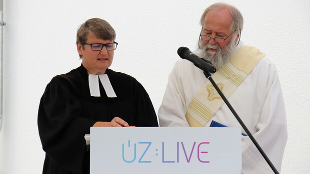 Anschließend wurde der neue Netzservicestandort noch von den Vertretern der katholischen und evangelischen Kirche, Diakon Richard Friedrich und Pfarrerin Hermine Wieker, gesegnet. Der zukünftige Hausherr, Nikolas Edelmann, führte die Gäste schließlich noch durch das neue Gebäude.