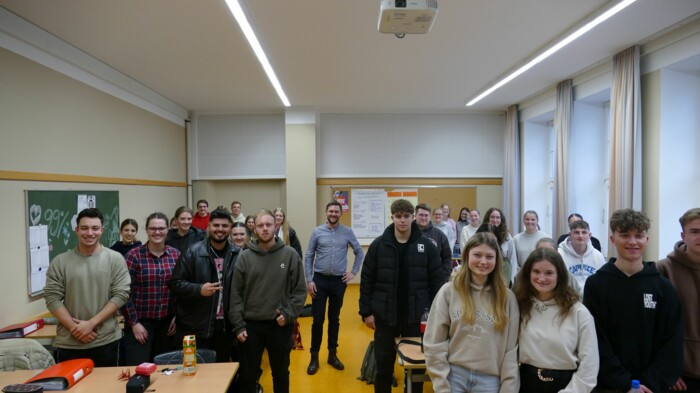 Am Mittwoch, den 20.12.2023 besuchte Dr. Benjamin Geßlein die Ludwig-Erhard-Berufsschule in Schweinfurt, um den Schülern Projektmanagement in der Praxis näher zu bringen. Hierbei stellte er zunächst unser Unternehmen vor und erläuterte die vielfältigen Unternehmensfelder. Das theoretische Wissen über Projektmanagement wurde nun durch die Eindrücke aus der Praxis vertieft.