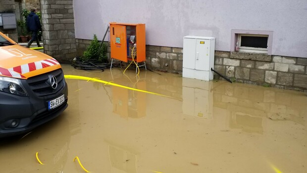 Am Freitag kam es durch die örtlichen Starkregen an zahlreichen Stellen im Versorgungsgebiet der ÜZ Mainfranken zu großflächigen Überflutungen, die auch vor unseren Stromversorgungsanlagen nicht Halt machten. Besonders betroffen waren neben vielen weiteren Ortschaften der Raum Knetzgau sowie Wiesentheid, Stadelschwarzach und Umgebung. Dank des großartigen Einsatzes unserer Bereitschaftskräfte sowie der Einsatzkräfte der Feuerwehr, des THW, der gemeindlichen Bauhöfe und der Anwohner vor Ort, konnten wir das Wochenende gemeinsam ohne Ausfälle bestreiten.