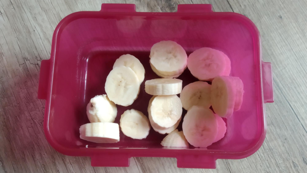 Banane in Stücke schneiden und für mindestens 6 Stunden einfrieren.