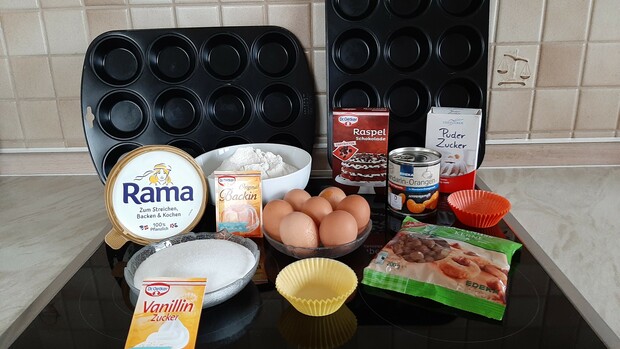 außerdem Papierförmchen, Puderzucker oder Kuvertüre