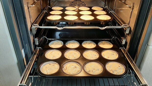 Die Muffins bei 160 Grad Heißluft ca. 35 - 40 Minuten backen. Den Backofen nicht vorheizen!
