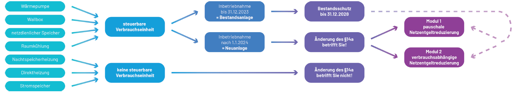 Ab 2029 werden Bestandsanlagen, welcher auch unter die neue Definition einer steuerbaren Verbrauchseinrichtung falle, automatisch in die neue Regelung überführt - wir informieren unsere betroffenen Kunden rechtzeitig!